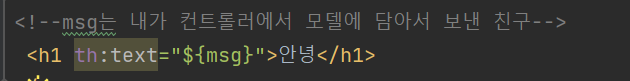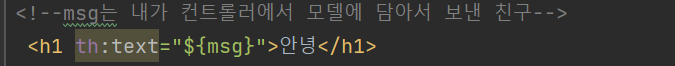 <h1 th:text="${msg}">안녕</h1>