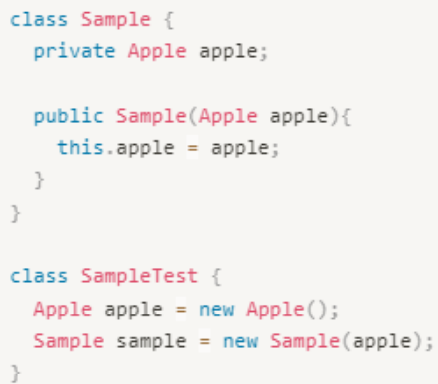 → Apple 객체의 제어권이 Sample 에 있는 것이 아닌, SampleTest에게 있다.