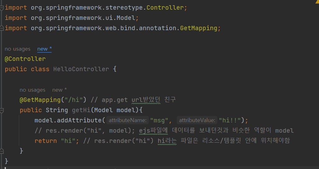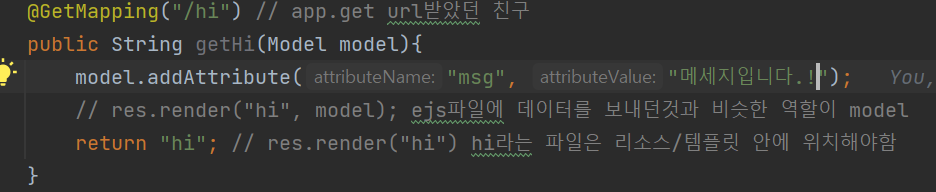 model.addAttribute("msg", "안녕하세용!");