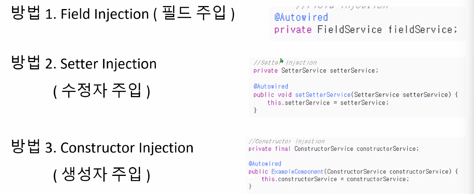 2, 3의 차이는 getter냐 생성자냐..1번은 처음 배우는 것