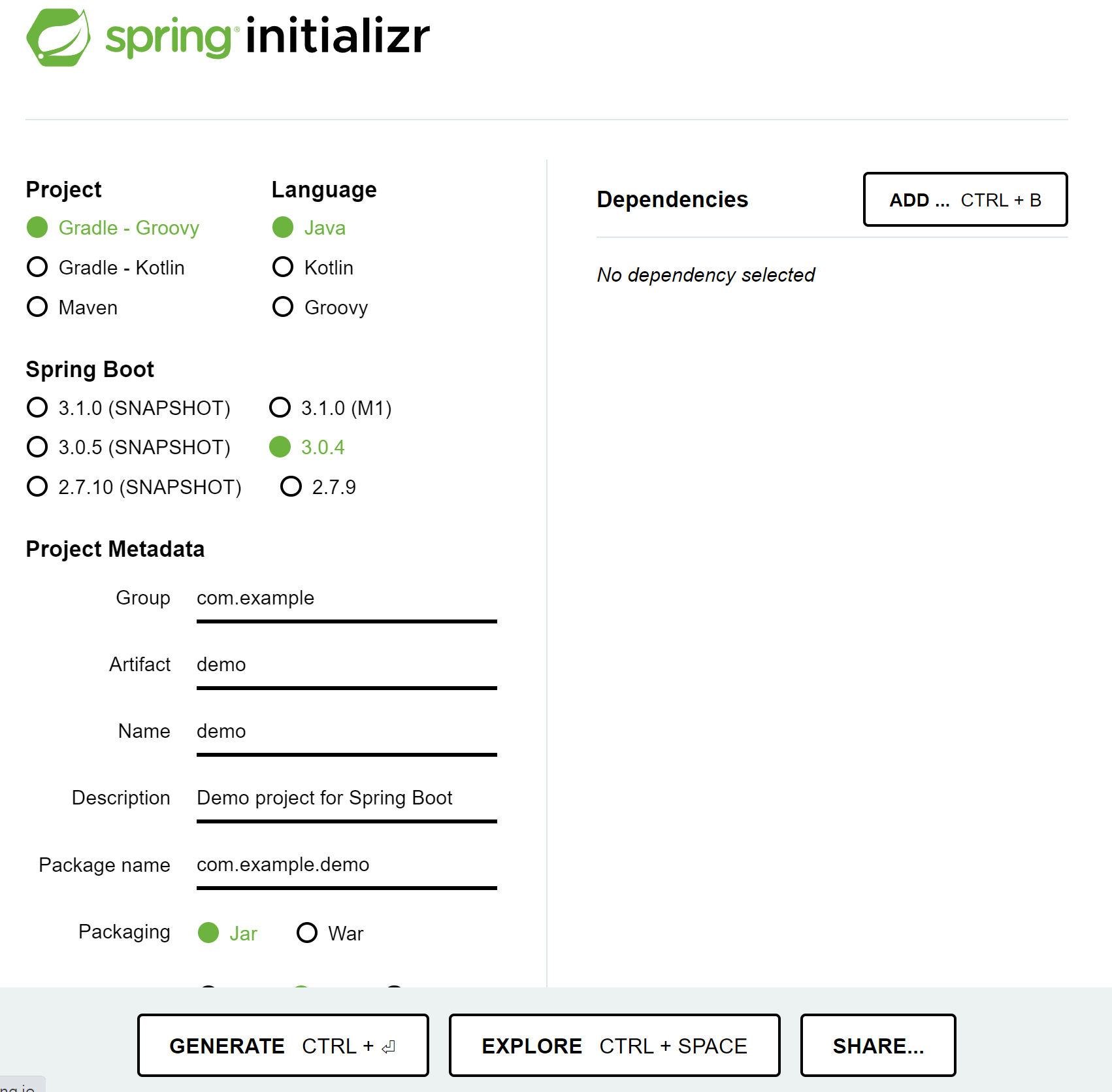 • Spring Boot 기반으로 Spring 관련 프로젝트를 만들어주는 사이트