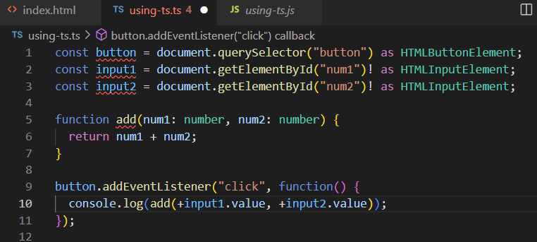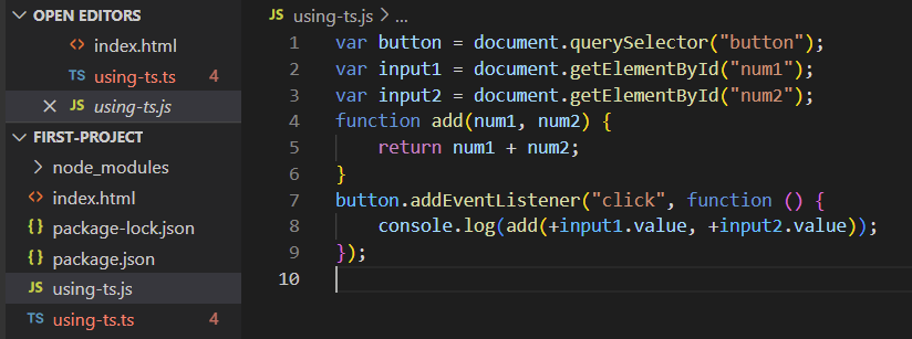 js-only.js 파일의 코드를 using-ts.ts 파일에 복사합니다.