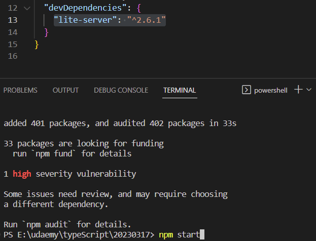 2. npm i --save-dev lite-server => 개발 전용 종속성 표시
