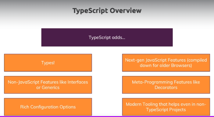 큰 장점은 추가 타입이다. 이것때매 타입스크립트라고 불린다.