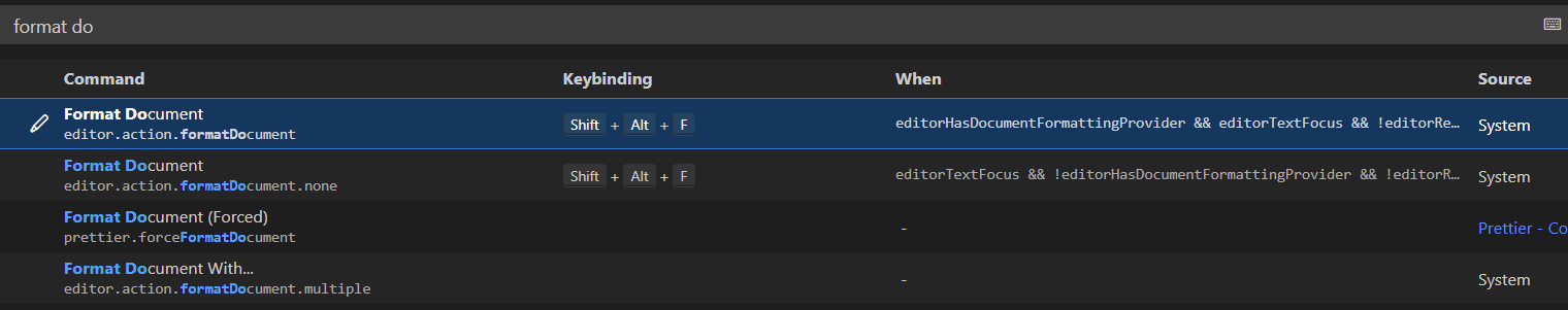 => format document를 검색하면 나타나는 단축키들을 코드에서 사용하면