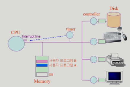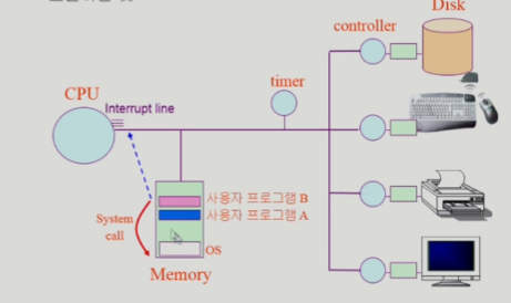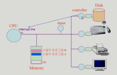 사용자 프로그램이 interrupt line 셋팅 ㅡ> cpu 운영체제로 ㅡ> 부탁한일을 운영체제가 할 수있다.