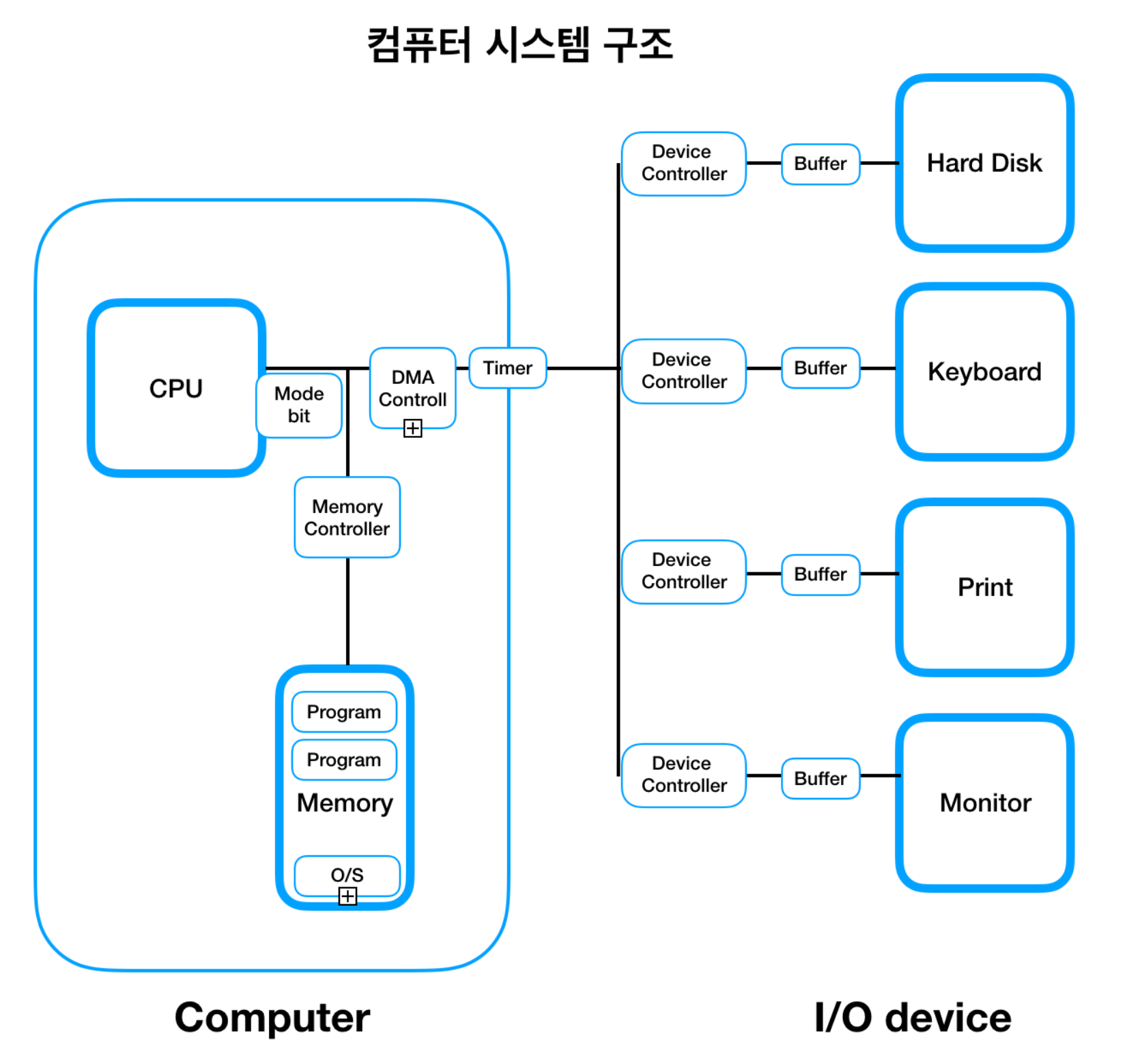 ✅ 프로세서(cpu), 기억장치(메모리), 입출력 장치(I/O) 등의 컴퓨터 시스템의 자원(resource)을 효율적 관리
