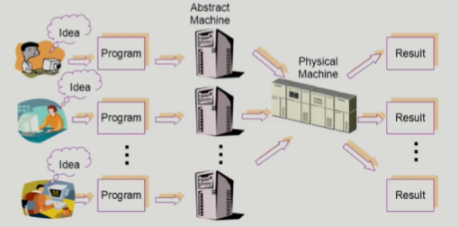 ✅ 운영체제는 동시 사용자 & 프로그램들이, 실제로 물리적 하드웨어는 하나이고 동시에 여러 사용자/프로그램이 실행되는 것이지만, 각자 독자적 컴퓨터에서 수행되는 것 같은 환상을 제공 함