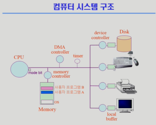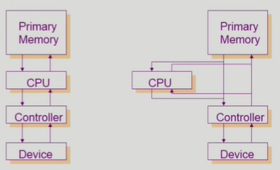 메모리를 접근할수잇는 장치가 cpu뿐 ㅡ> I/O 장치들이 cpu랑 교신을 할 때 인터럽트를 건다.