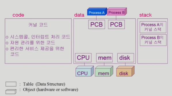 ㅡ> 육면체는 실제 하드웨어를 뜻하고/ 사각형은 그런 하드웨어를 관리하기 위한 자료구조를 의미
