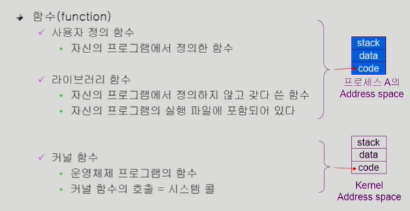 - 또는 운영체제의 함수를 사용자 프로그램이 요청할때