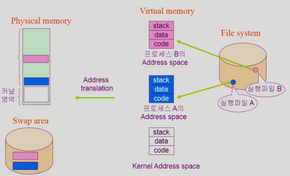 사용자 프로그램들을 실행시키면 주소 공간이 생겼다가 프로그램 종료 시키면 사라지게 된다.