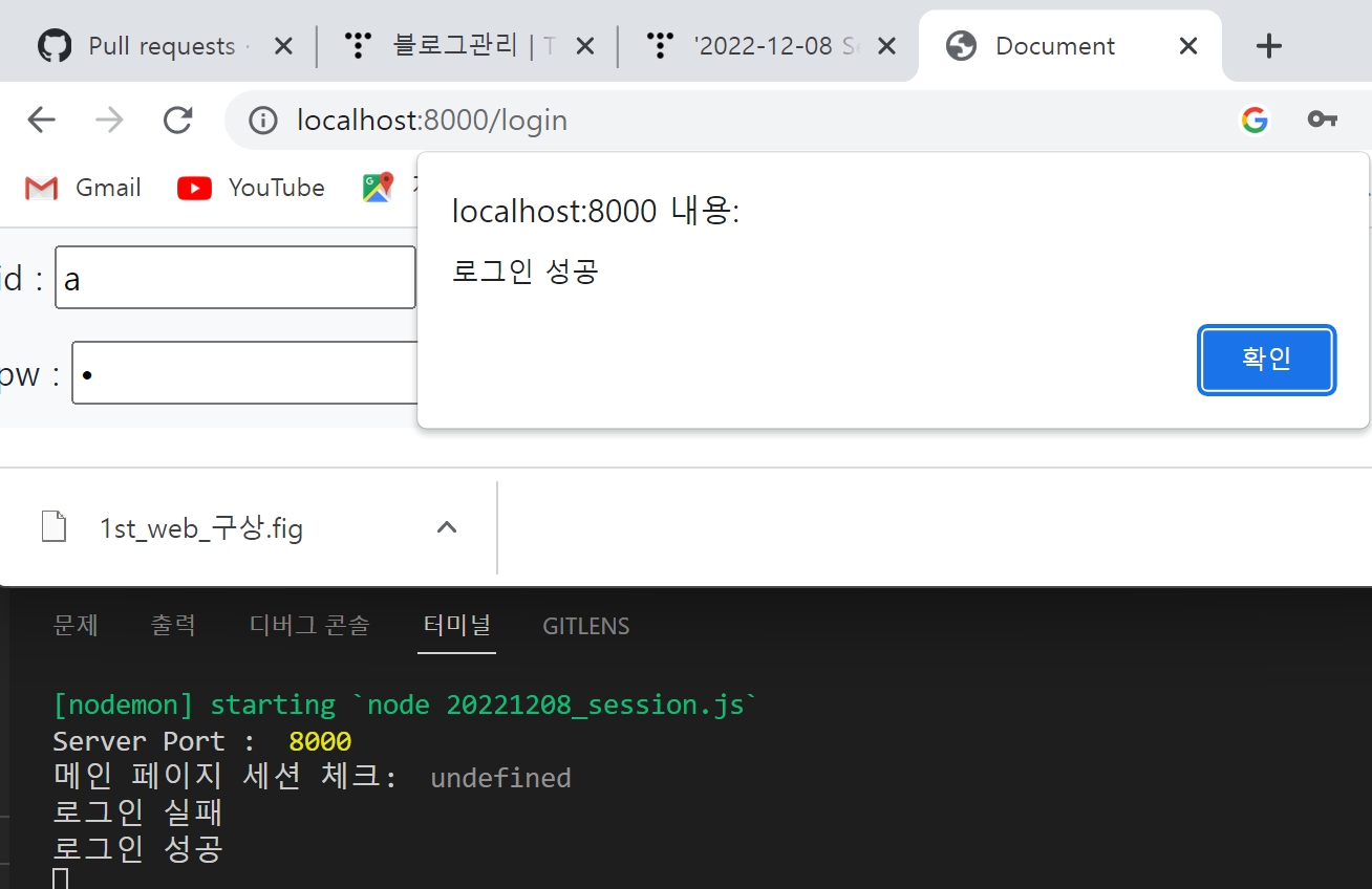 쿠키이름이 제대로 있다면, ejs파일을 렌더하고, popup : none