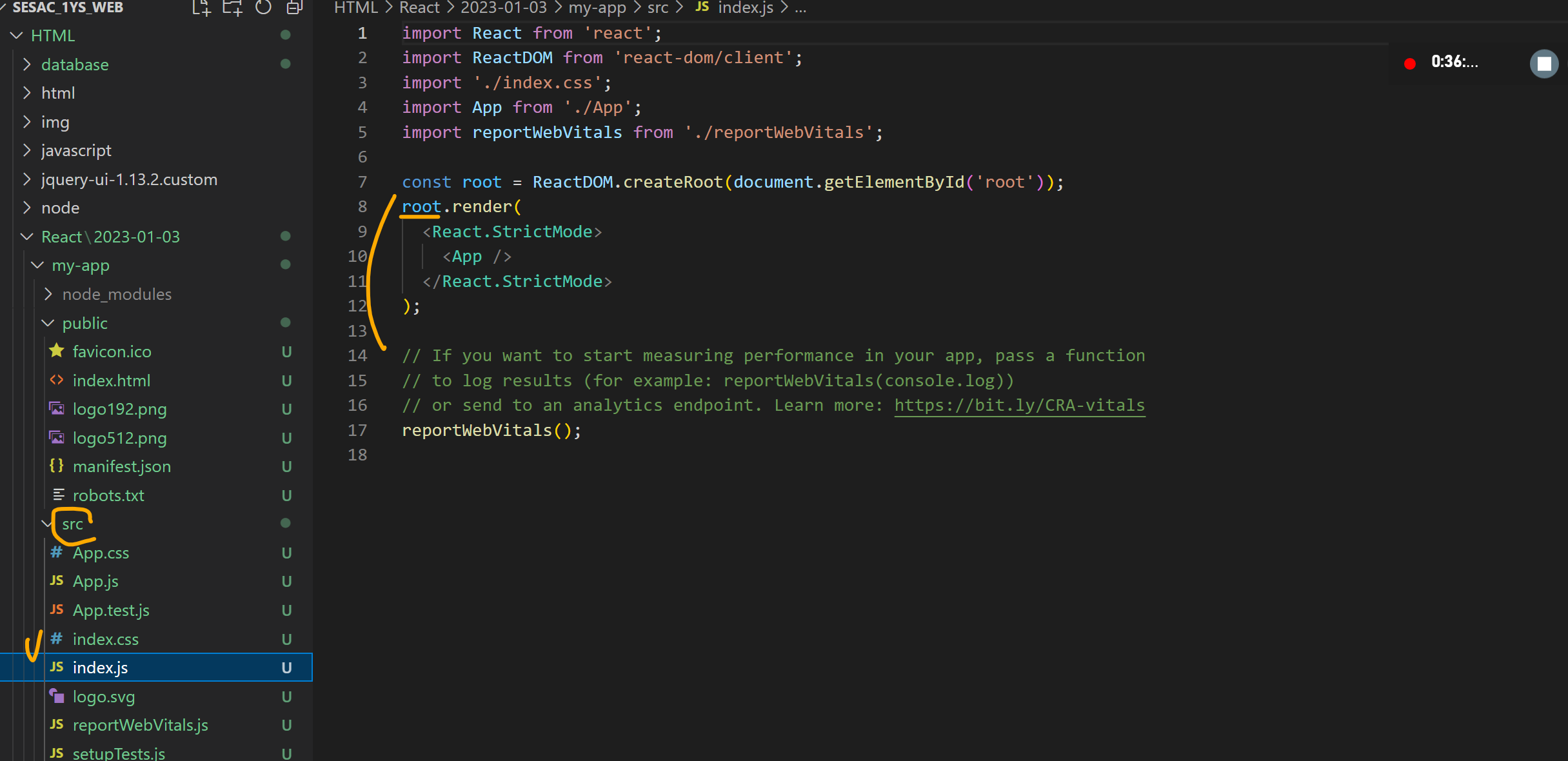 알아서 리액트를 위한 폴더를 만들어줍니다.