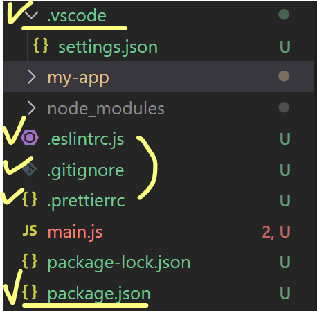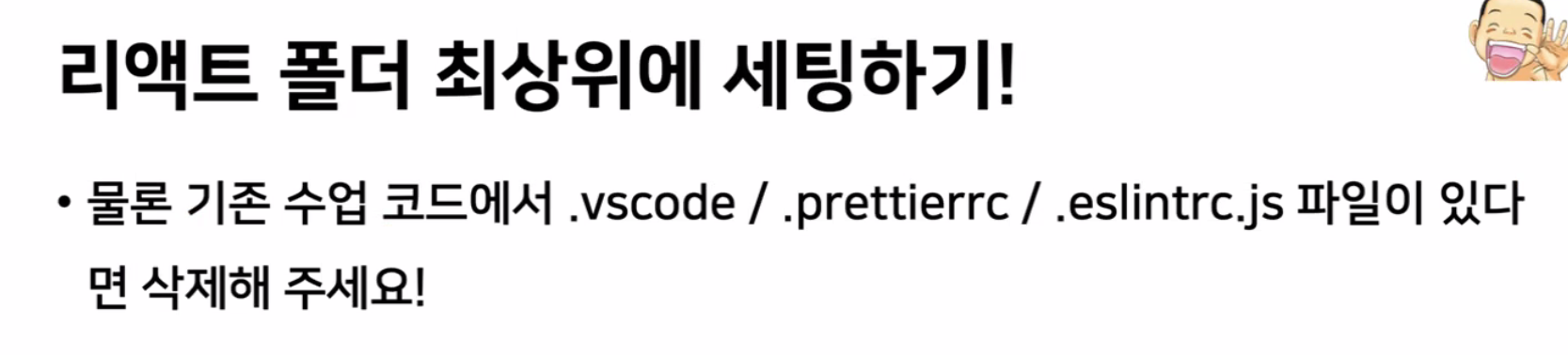 - 기존 .vscode 코드와 .prettierrc / .eslintrc.js 파일을 리액트 폴더 최상위로 옮깁시다!