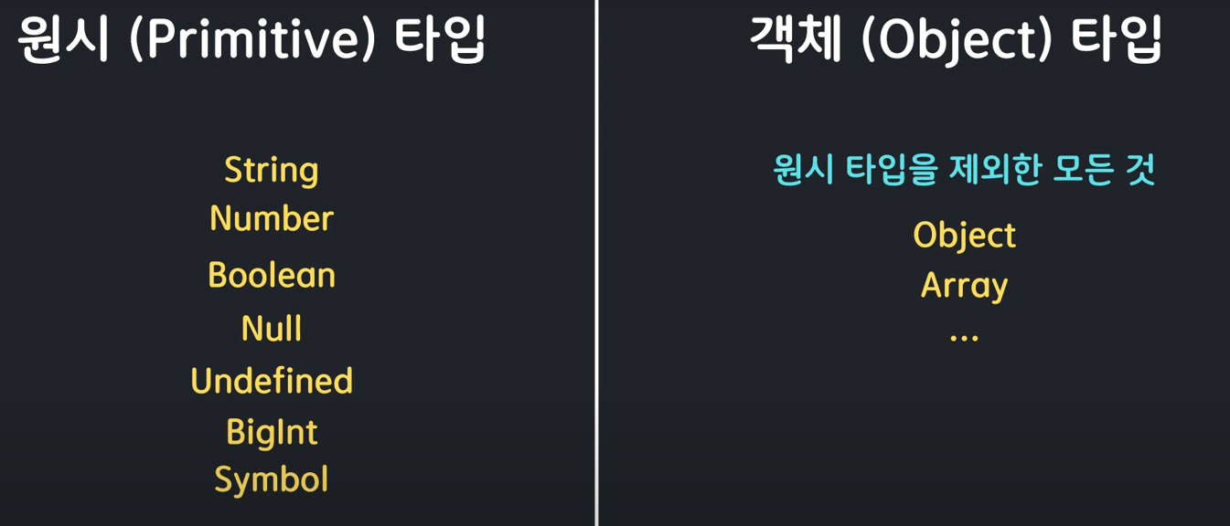 원시타입, 객체타입이 있다.