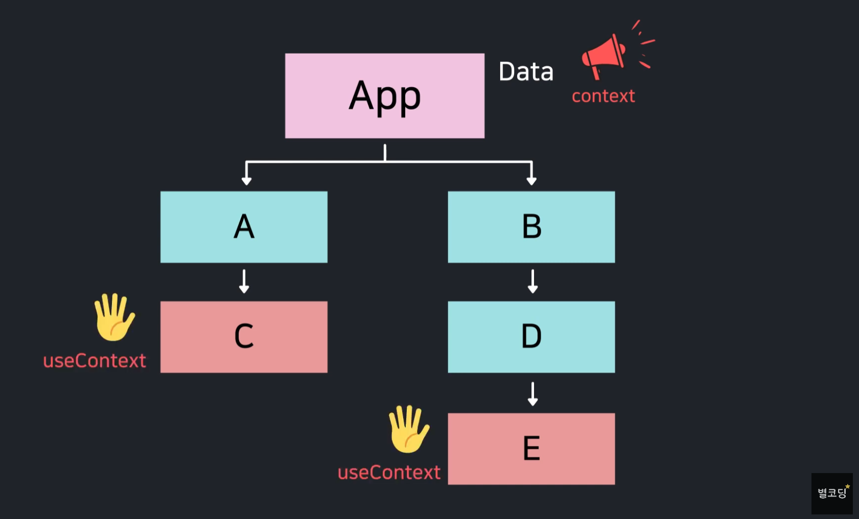 원래는 단계별로 차근차근 props를 전달해야하는 형식