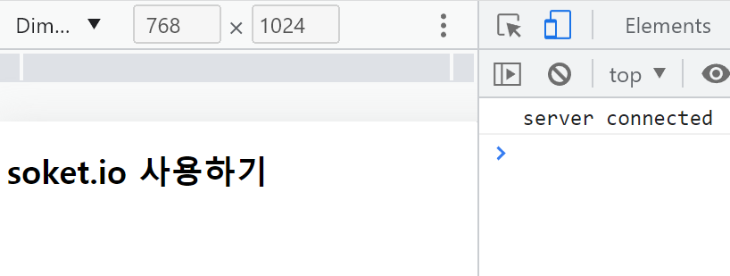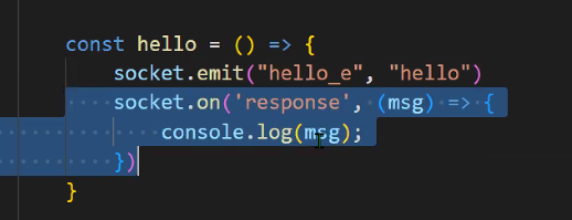 4. 이제 클라이언트 부분에서 socket.on ('connect, () => { }); 메세지 받기 함수를 쓴다.