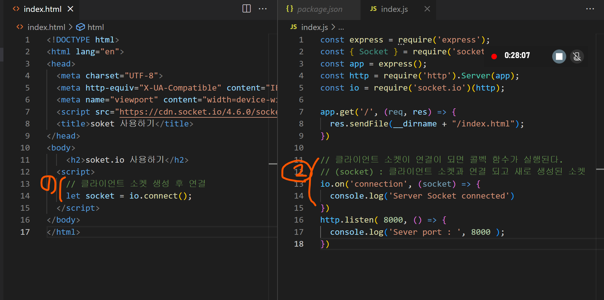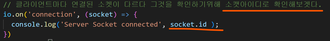 2. 서버에서 io.on('connection', 연결이되면, 콜벡 함수가 실행된다.