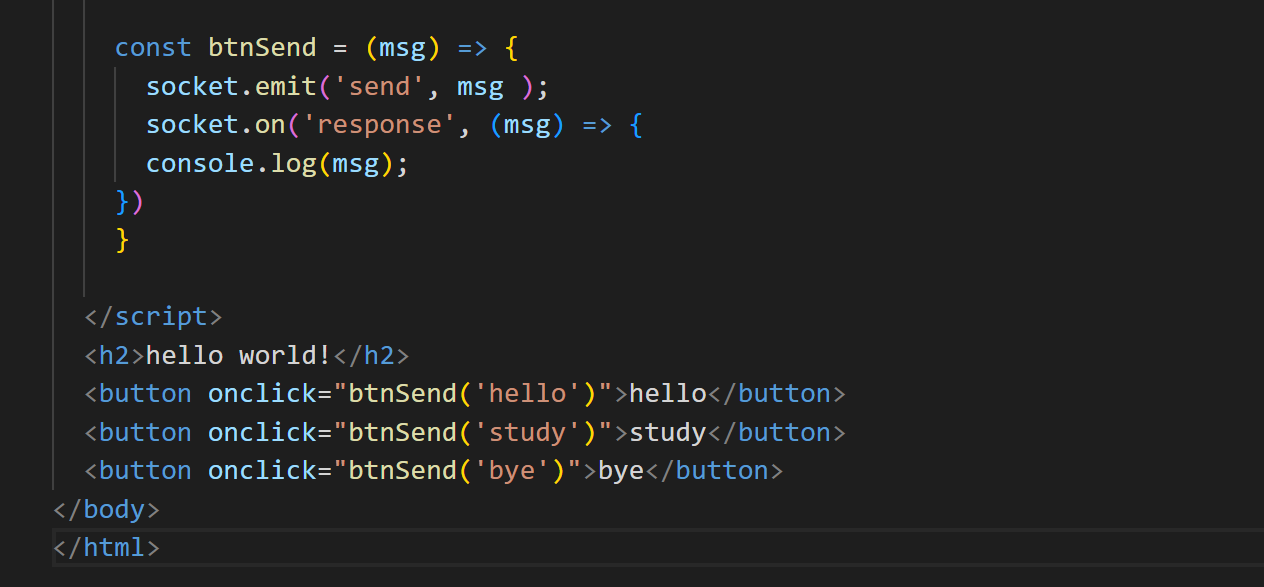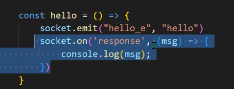 4. 이제 클라이언트 부분에서 socket.on ('connect, () => { }); 메세지 받기 함수를 쓴다.