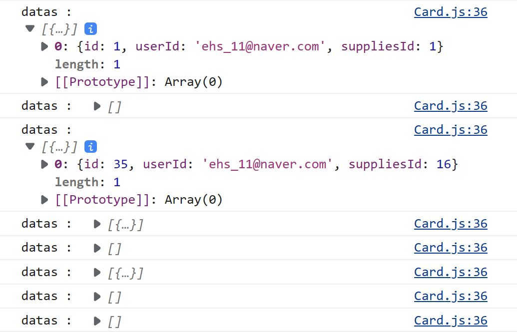 datas의 빈값들은 초기값대로 false / 값이 있는 얘들은 내가 좋아요한 찜 데이터 true