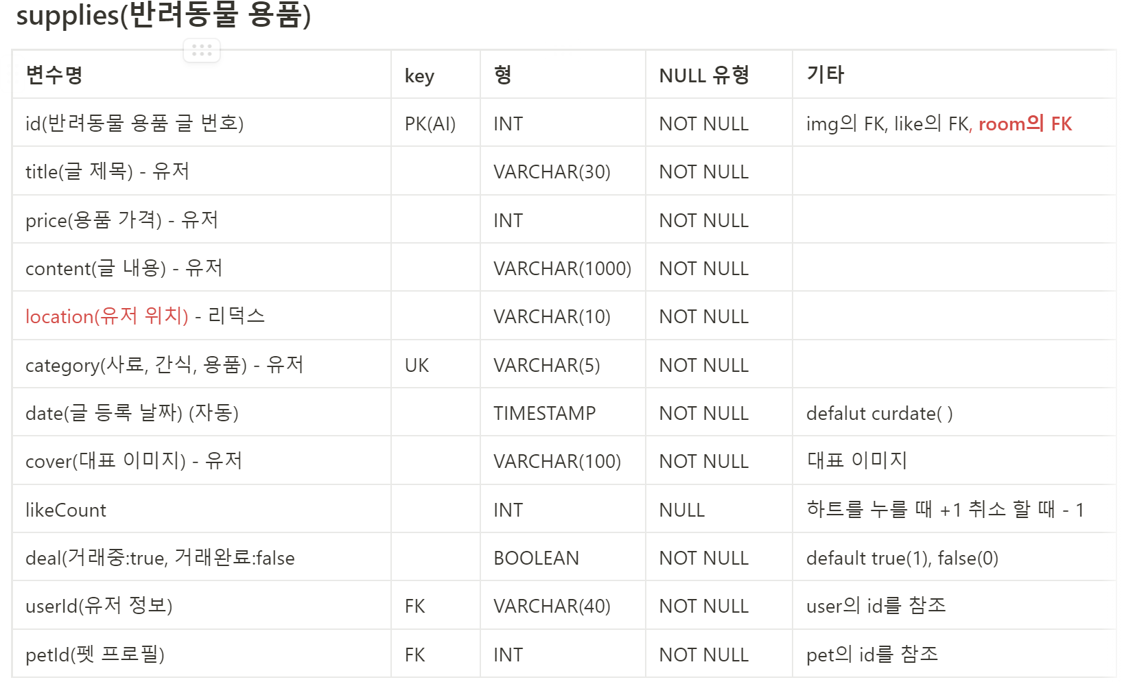 유저 아이디 / supplies의 pk 값을 가지고 있다.