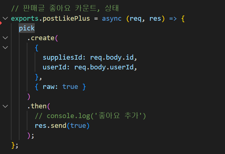 일단, pick 테이블에 userId 값을 리덕스에 저장된 유저 아이디값인 > isLoggedIn 값으로 post 요청으로 추가했다.