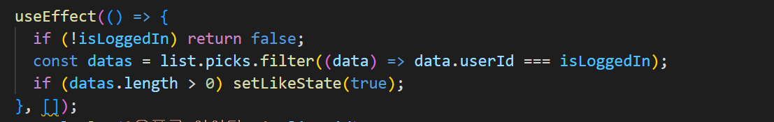 list.picks 모든 사람의 찜 데이터 값에 필터 를 걸었다 data.userId === isLoggedIn