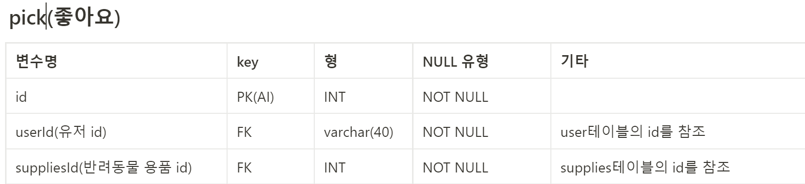 supplies 테이블의 likeCount는 모두의 찜 갯수 ( 거기에 유저아이디의 찜 +1 , -1 )