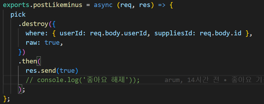 where: { userId: req.body.userId, suppliesId: req.body.id },