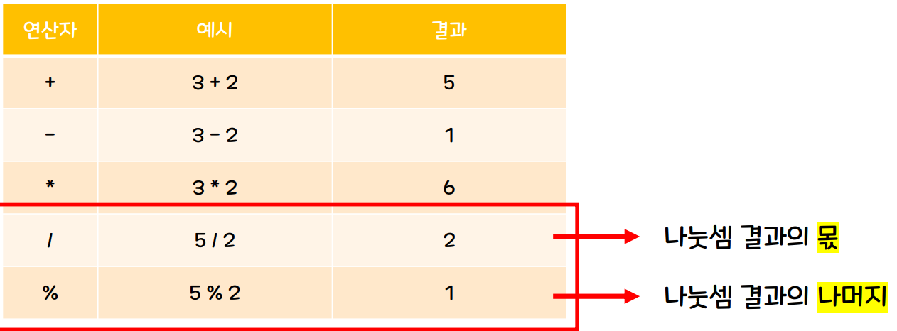 js랑 다른점은 별로 없으나.. 자바는 데이터 타입이 정해져있다보니, 정수랑 정수를 나누면 나눗셈의 몫만 출력이 된다.