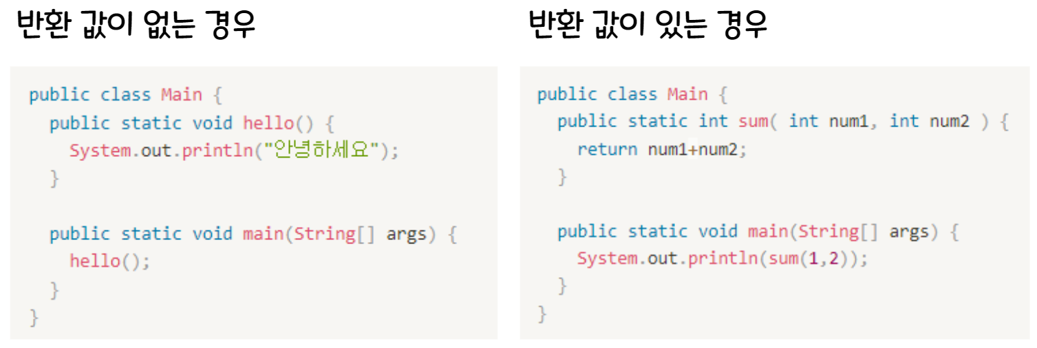 출력만 하는거면 반환값이 없는거다!! > 위의 경우는 그래서 void로 가능!!