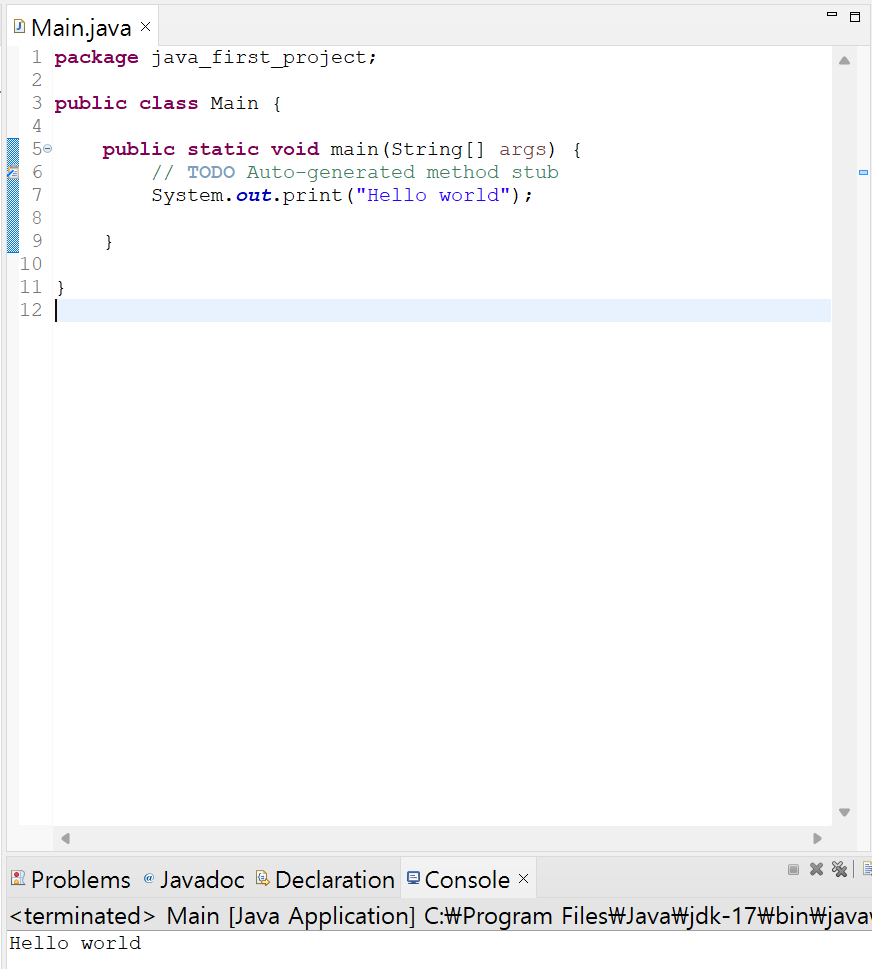System.out.print('Hello world');