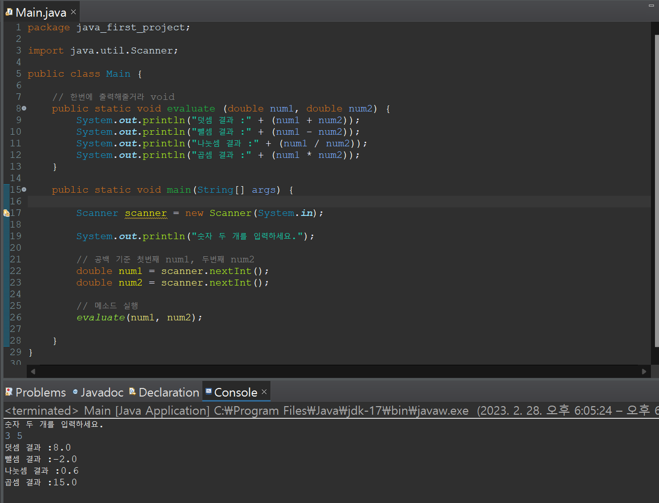 2023-02-28 JAVA / 환경설정 / 데이터타입 / 입출력 / 메소드 선언 본문