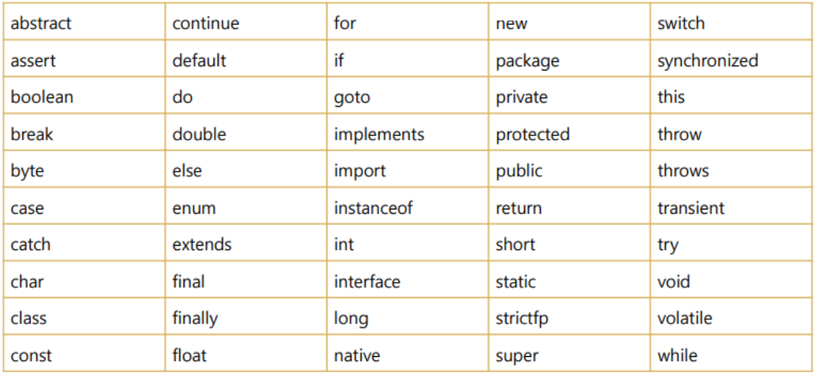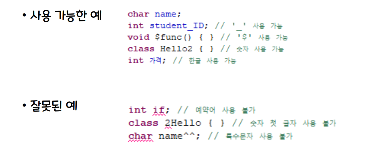 미리 정의된 키워드(예약어)는 식별자로 사용 불가