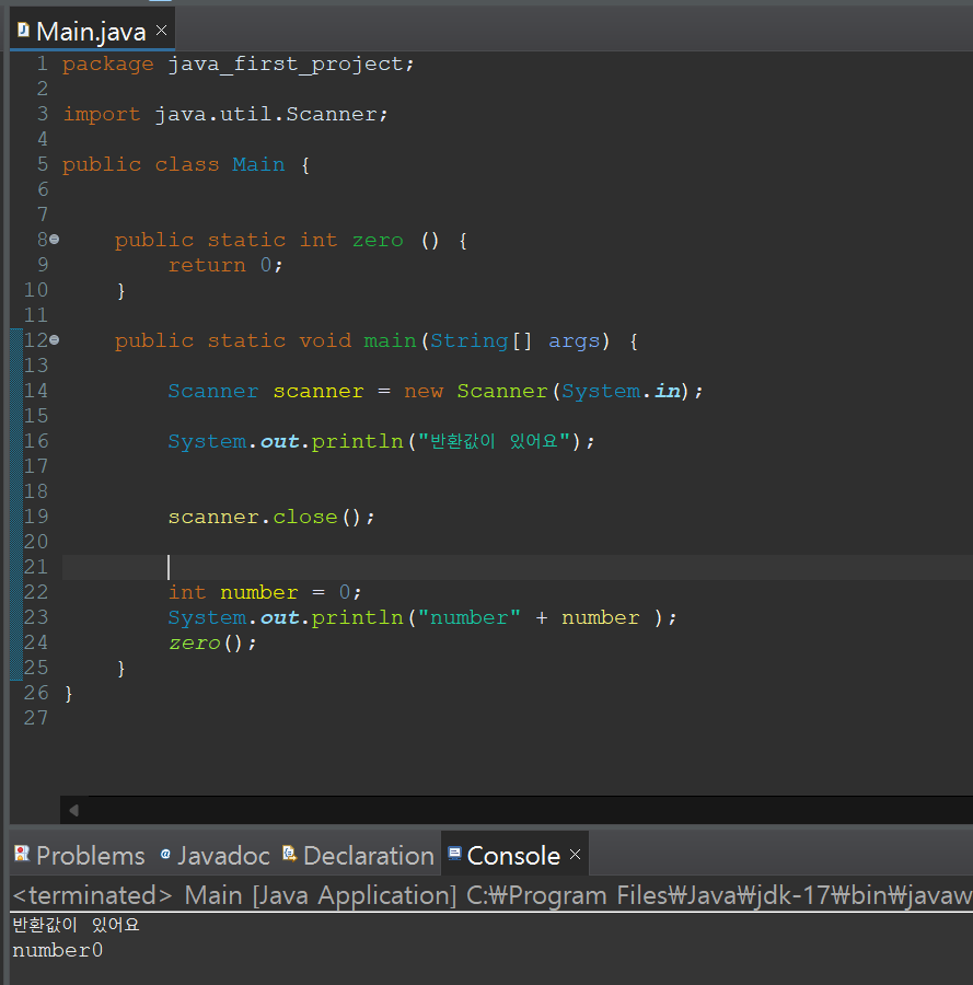 System.out.println("반환값이 있어요");