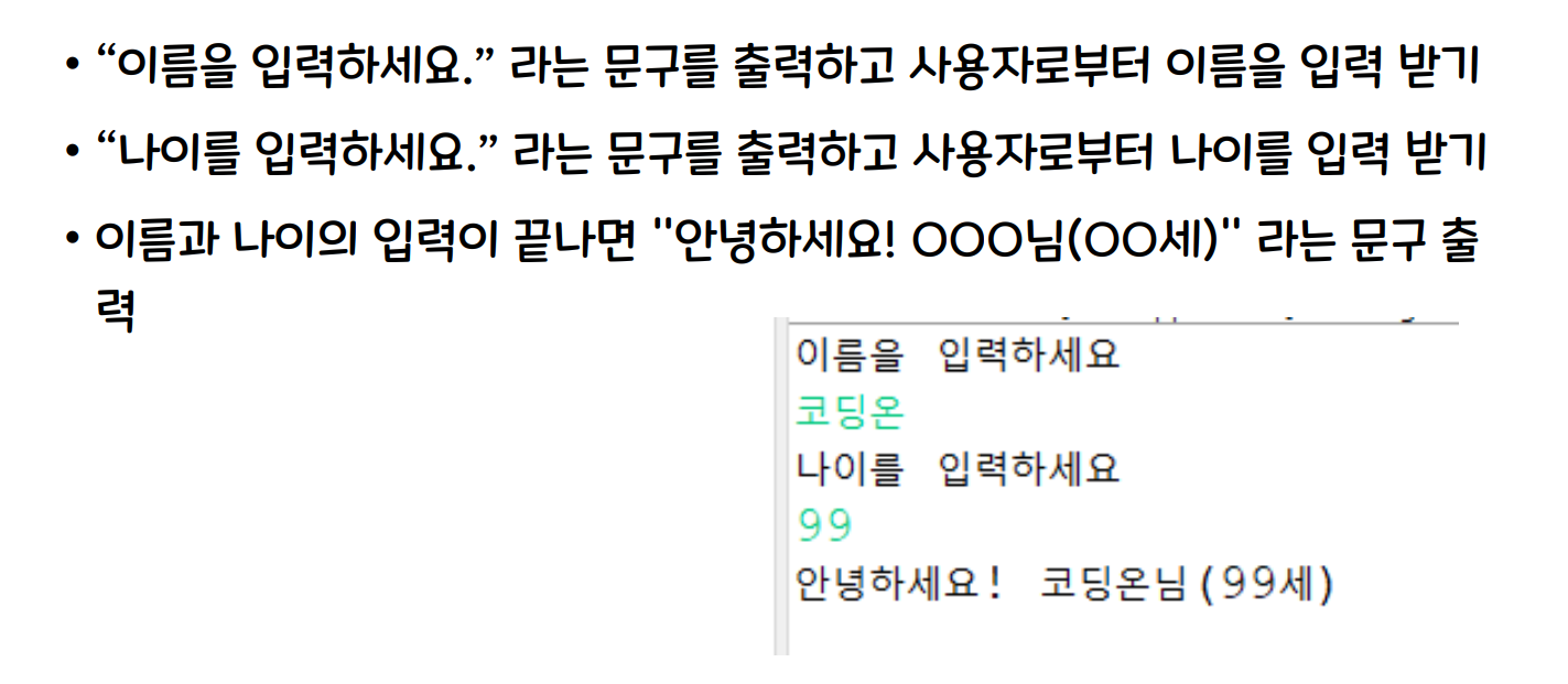 System.out.println("이름을 입력하세요, 나이를 입력하세요");
