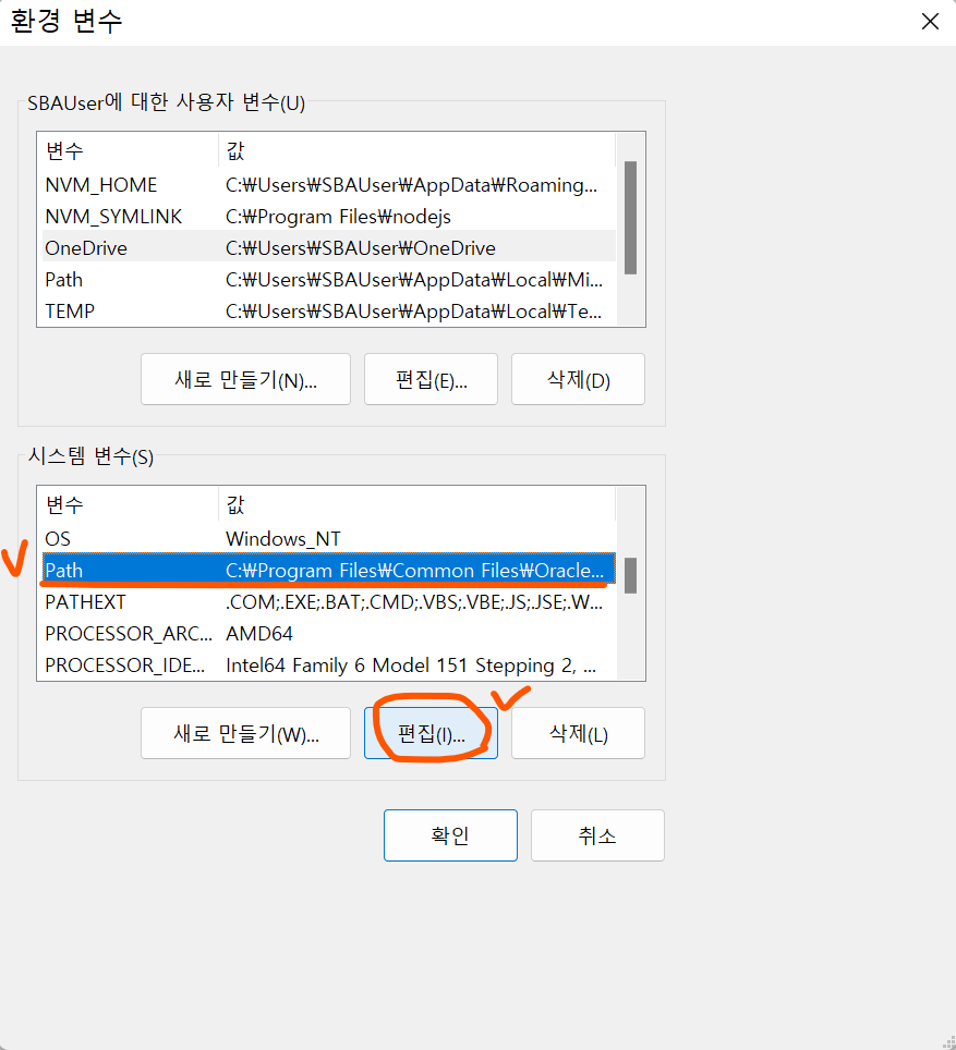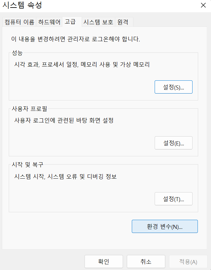 (참고) 환경변수 설정 (windows)