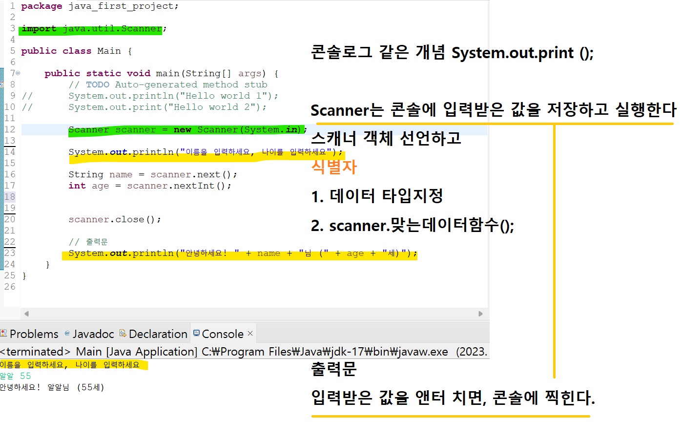 Scanner 는 콘솔에 입력한 값을 저장하고 실행한다.