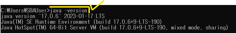 설치 확인은 propmpt 켜서