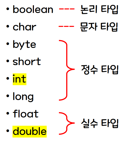 보통 int , double 을 쓰긴하지만요