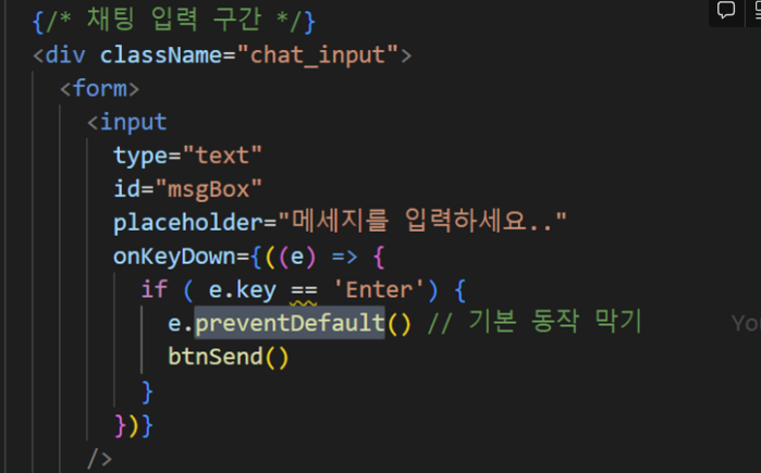 엔터 자체 문제라고 판단하셔서 e.preventDefault 함수를 거심