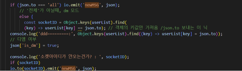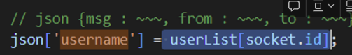 - key = json.to 라고 했기때문에 // json.to의 소켓 아이디값이 userList[key] 에 들어간것…