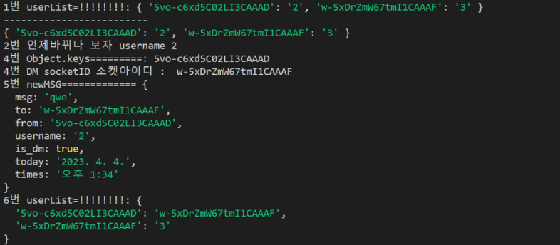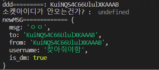 ⇒ 닉네임 = 소켓아이디 비교 x / 소켓아이디값이 같은지 비교해야 했다.