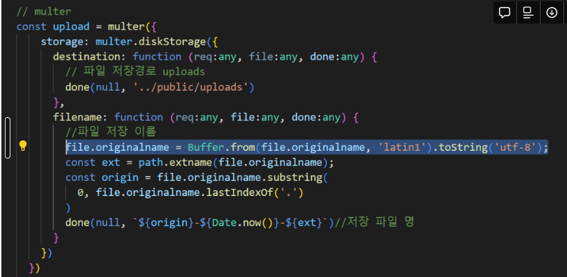 (multer가 의존하는 busboy 패키지가 파일의 기본 chrset을 litin1 으로 설정해뒀기때문