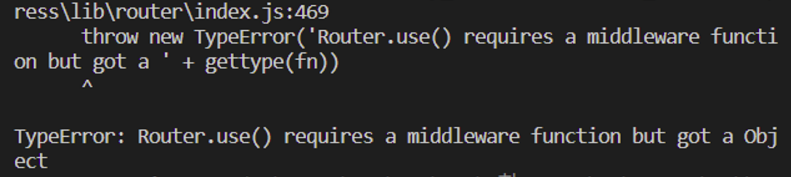 ****[Node.js 에러]****throw new TypeError('Router.use() requires a middleware function but got a ' + gettype(fn))