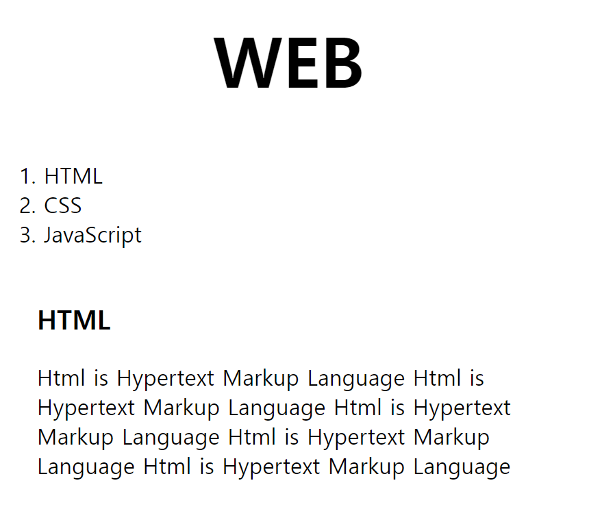 h1 h태그는 제목태그라 전체부분을 써서 줄바꿈이 된다.