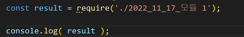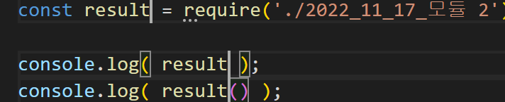 두번째 파일에서 require 함수로 위의 모듈을 result란 객체에 넣는다.