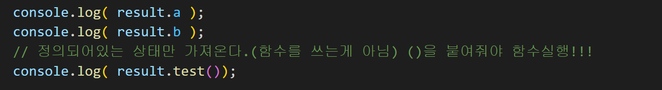 result.test() // 함수는 result라는 객체 속에 test()라는 함수를 실행 해줘