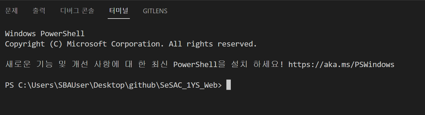 터미널 이전명령어 화살표(위) 방금명령어가 복사 붙이기 되어 나온다.